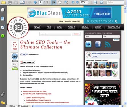 - Сохранить страницу как PDF файл;
