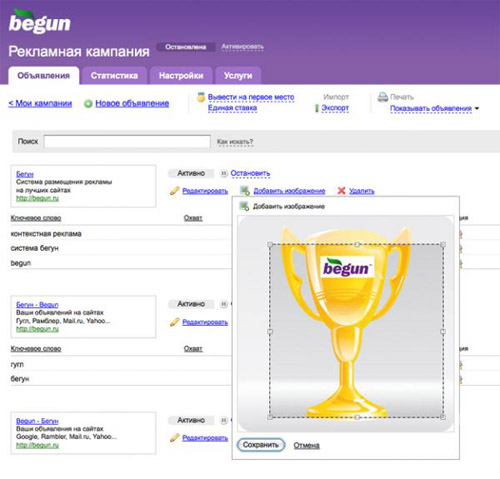 Бегун делает апгрейт своих «витрин» - объявлений с картинками. Теперь загружаемые для них изображения можно сервиса.