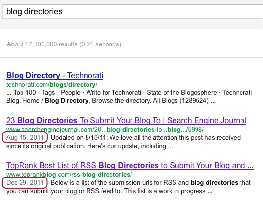 Улучшился алгоритм определения даты для документа: данные, отображаемые в поисковых результатах стали гораздо точнее. Кроме того, как заметил Мэтт МакГи (Matt McGee), SearchEngineLand, в выдаче отображаются и даты последних апдейтов документов, которые были созданы несколько лет назад.