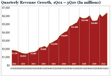 О положении дел на американском рынке интернет-рекламы . В III квартале этого года объем рынка достиг рекордной отметки в $6,4 млрд., продемонстрировав 17% рост с аналогичный периодом 2009 года.