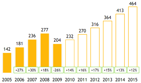 Что касается прогнозов, TNS делает их для рекламного рынка РФ в целом. Если в 2006-2007 году рекламные бюджеты ежегодно увеличивались примерно на треть, то в ближайшие пять лет их положительная динамика едва ли превысит отметку в 17%.