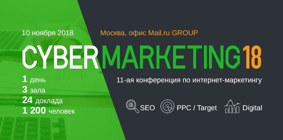 10 ноября в московском офисе Mail.ru состоится ежегодная конференция по интернет-маркетингу CyberMarketing-2018