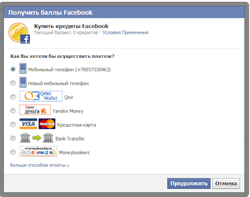 Социальная сеть Facebook открыла два новых способа оплаты своей внутренней валюты – кредитов. Приём средств теперь возможен с помощью Яндекс.Денег и QIWI кошелька.