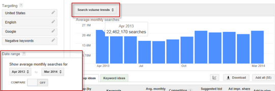 За аналогичный период прошлого года: Если выбранный период — с января 2014 по март 2014, Google будет сравнить данные с января 2013 по март 2013 года.