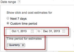 За предыдущий период: Если диапазон дат устанавливается с января 2014 года по март 2014, Google будет сравнивать и отображать результаты за предыдущий период времени с октября 2013 по декабрь 2013 года.