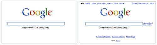 После нескольких месяцев тестирования Google заменил свою классическую главную страницу на новую. Новая страница выдержана в еще – ничего кроме лого, строки поиска и двух кнопок (Поиск в Google и Мне повезет!). Но это только первые несколько секунд, малейшее движение мыши по странице, и на ней тут же начинают проявляться остальные, знакомые по старой версии, элементы страницы. Новая страница работает для всех локальных версий Google.