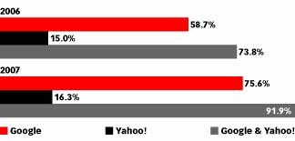 Доли Google и Yahoo! на рынке контекстной рекламы в 2006 и 2007 годах