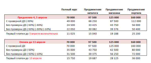 При регистрации на курс до 12 апреля оплатить можно в рассрочку в 2 платежа.