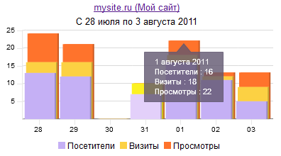 Пользователи Яндекс.Метрики теперь могут быстро просмотреть прямо с главной страницы Яндекса с помощью специального виджета Метрики. Он представляет собой гистограмму, в которой отражена информация о посетителях, визитах и просмотрах за неделю.