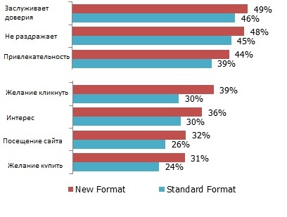Отношение пользователей к крупным форматам дисплейной рекламы и стандартным: