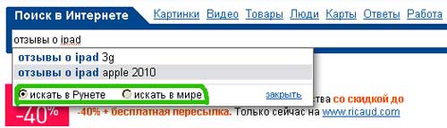 Теперь после введения запроса, пользователю поисковика предоставляется выбор: «искать в Рунете» или «искать в мире». Предполагается, что в будущем технология Google может быть использована и для поиска по Рунету.