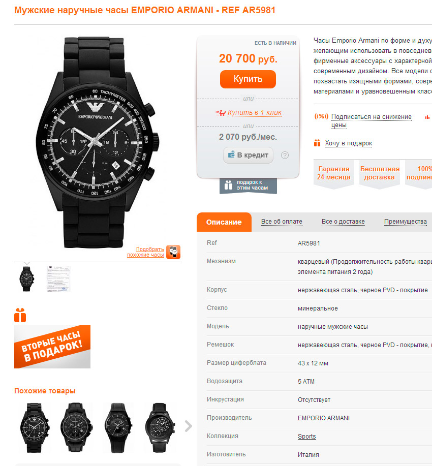 Тут в помощь клиенту приходит весьма полезная функция предложения аналогичных товаров. Например, рекомендательный сервис поиска похожих товаров , разработанный компанией «Кузнеч», позволяет клиенту увидеть почти все похожие товары вашего магазина на одной странице. Это не только повышает юзабилити сайта, но и может являться хорошим дополнением к функционалу интернет-магазина.