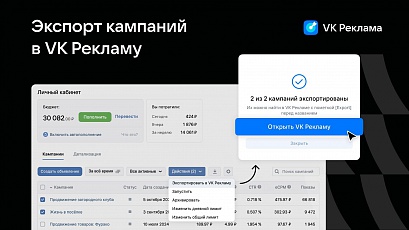 Теперь рекламодатели смогут в пару кликов настроить перенос кампаний из кабинета ВКонтакте на платформу VK Реклама. Повторно настраивать объявления не нужно. Функция уже доступна всем прямым рекламодателям, а в ближайшее время воспользоваться опцией смогут и рекламные агентства.