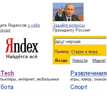 Одновременно 54-летний москвич Гледенов сообщил Президенту, что теперь, согласно выдаче Яндекса, Владимир Путин «друг народа». По этому запросу сайт президента поисковая система выдает .