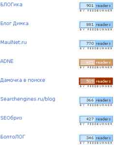 Накануне Дмитрий Голополосов (aka Dimok) на своем блоге представил нечто вроде рейтинга блогов, составленного на основе количества подписчиков. Для составления рейтинга используется FeedBurner. Рейтинг будет пополняться новыми блогами, в частности теми, о которых будут сообщать сами читатели. Условие только одно SEO-блог должен иметь более 100 подписчиков.