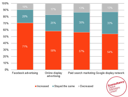 В результате исследования выяснилось, что за последние 12 месяцев более половины опрошенных (58%) повысили свои расходы на баннеры, объявления в онлайн-видео и интерактивную рекламу.