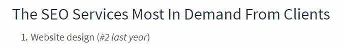 По результатам опроса самыми востребованными услугами стали веб-дизайн, On-Site оптимизация и SEO-аудит.