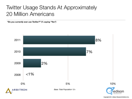 Исследовательская компания пришла к выводу, что Twitter знают, но им не пользуются. Согласно проведенному исследованию, узнаваемость бренда микроблогингового сервиса среди американцев от 12 лет и старше составила 92%. Таким образом, продемонстрировав небольшой рост по сравнению с показателями прошлого года – 87%.