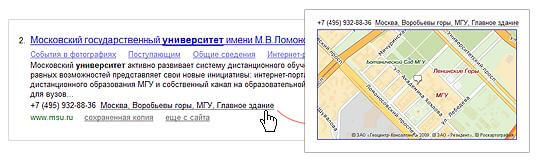 , что к сайту можно привязать большое число адресов, включая филиалы или точки продаж: «В результатах поиска пользователь увидит адрес, соответствующий его местоположению или запросу». Сейчас такая возможность работает в бета-тестировании: добавлять контакты организации могут только сайты, ТИЦ которых выше 10. Мягкое ограничение, поэтому скорее всего Яндексу придется обрабатывать большое количество заявок даже в период бета-тестирования.