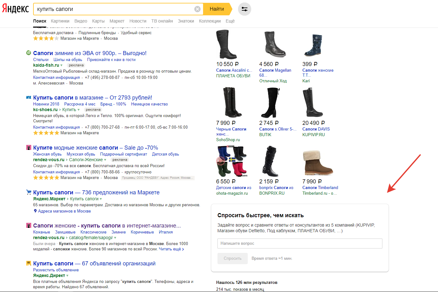 После ввода вопроса в окно чата, он отправляется сразу нескольким компаниям. Выбрать, какие компании получат вопрос, нельзя. Как видно на скриншоте, красной точкой отмечена организация, отреагировавшая на вопрос пользователя: