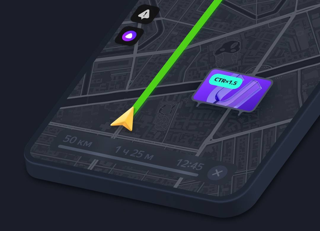 Билборды в Яндекс Картах и Навигаторе стали эффективнее, сообщается в канале Яндекс Рекламы. Билборды в Навигаторе теперь заметнее для пользователей, но при этом они не перекрывают маршрут и не мешают движению.