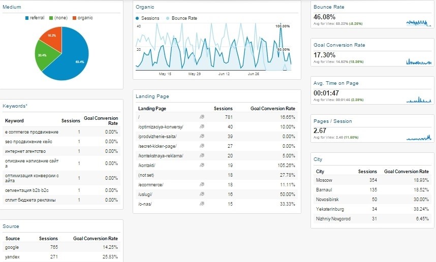Дают общее представление о поведении пользователей на сайте и о релевантности предлагаемого им контента. К этим данным относятся показатель отказов, среднее количество страниц за посещение, среднее время, проведенное на странице, количество уникальных пользователей.