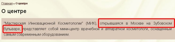 Если сайт продвигается по одному региону, необходимо включить его название в тексты, размещенные на страницах сайта. Важнее всего это сделать для главной и специально продвигаемых страниц. Например, можно сказать, что «наша компания была основана и работает в городе Москве уже более 10 лет». Подобное упоминание на сайте повышает релевантность текста при ранжировании по данному региону. Пример можно посмотреть на http://www.mikclinic.ru/about/.