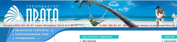 Когда представительства компании охватывают несколько городов, для удобства пользователей можно создать сквозной блок со ссылками на страницы контактов этих филиалов. Пример такого блока можно посмотреть на сайте www.prata.ru