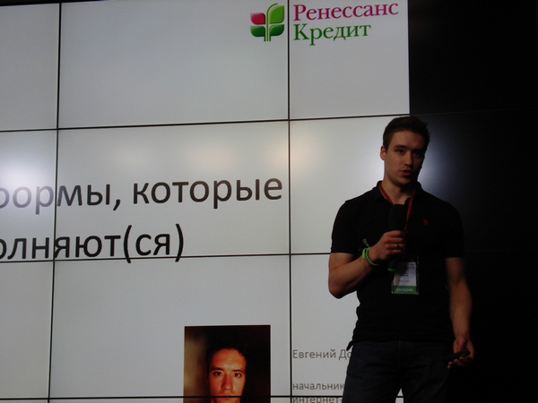 Третьим выступающим оказался Евгений Доронин, «Ренессанс Кредит». Он показал кейс с результатами А/В-тестов формы онлайн-заявки для получения кредита наличными. В процессе доклада Евгений сделал выводы: