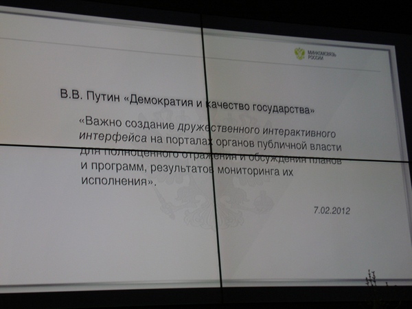 И, наконец, гвоздь программы – выступление юзабилити-эксперта Минкомсвязи России Дмитрия Сатина. Основной вопрос, поднятый докладчиком: «Как повысить качество пользовательских интерфейсов в госсекторе?». Для начала небольшая цитата Владимира Владимировича.
