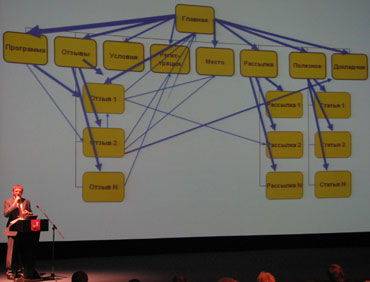 Вторая половина дня была не менее насыщенной. В программе были сделаны небольшие изменения. Доклад Дмитрия Сатина, руководителя UsabilityLab, "Юзабилити: защита инвестиций в рекламу" был перенесен на пятницу. Вместо него Андрей Воробьев, директор департамента по связям с общественностью компании Ru-center, рассказал аудитории о видах виртуально мошенничества: киберсквоттинг, тайпсквотинг, фишинг и хаджекинг. Однако не всегда причиной потери домена являются вышеперечисленные проблемы. Часто обладатели лишаются своего домена из-за собственной халатности, например, забывая произвести оплату за перерегистрацию на следующий срок.