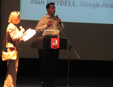 Уникальным событием можно назвать выступление Алана Бойделла, специалиста по аналитическим сервисам Google. Дело в том, что впервые в истории конференции eTarget выступал зарубежный докладчик. Google-специалист рассказал о возможностях аналитической системы Google Analytics для оптимизации рекламных кампаний и веб-сайта. Воспользоваться данным инструментом могут не только клиенты Google Adwords , но и других рекламных платформ, в том числе Яндекс.Директа. Google Analytics доступен на многих языках, в том числе и на русском. По словам г-на Бойделла, принцип работы не отличается от большинства подобных программ. Система предполагает использование на сайте специального кода, устанавливаются куки, после этого данные оправляются сервису Google Analytics, где обрабатываются, а через три часа пользователь получает обновленную информацию. Также с помощью Google Analytics можно определить, какие станицы и как долго просматривал пользователь, а также проанализировать, на каком этапе и почему пользователи покидают сайт.