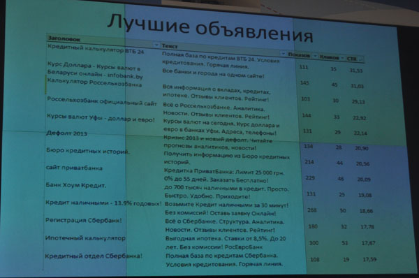 Второй день конференции в Казани открыл доклад под названием «Контекстная реклама Рунета в «семантическом зеркале», который подготовил Андрей Иванов, Нейрон Ру.
