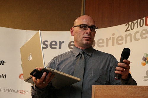 Эрик Райс (FatDUX Group) выступил с докладом «Killer content or content that kills». Для своих российских слушателей Эрик подготовил приятный сюрприз — впервые западный спикер выполнил слайды своей презентации на русском языке. Выступление запомнилось зажигательностью и артистизмом Эрика. Далее выступил Питер Буршма (Adaptive Path): «Больше UX элементов: Документирование процесса проектирования. Примеры реального мира». Свой доклад Питер основывал на известной диаграмме Джейсси Джеймса Гарретта «The Elements of User Experience», продемонстрировал каких элементов не хватает и каким образом UX команды могут разработать свои собственные диаграммы и сделать работу над своими Web-проектами более эффективной.